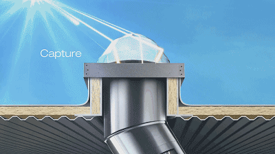光纖照明需要很強的光源,索樂圖導光管照明的采光罩具有專利技術,在黎明、傍晚和陰雨天都能保持充足的光照。